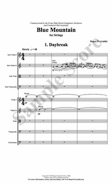 Much of this music developed in and around the Blue Ridge Mountains of the Appalachian Range with beautiful, broad, and majestic landscapes that stretch on seemingly to eternity. The first movement, Daybreak, paints a picture of the sun coming up over the horizon, revealing all of the majesty of the geography, foliage, and fauna. Solo melodies give the impression of life waking up while the orchestra plays notes on open strings, tuning up their instruments for the new day. The piece then moves to a chorale like ostinato that flows in and out of the foreground while the morning melodies weave in and out of the texture with light, dancing lines bouncing about. The texture goes back and forth between the full orchestra and solo string quartet as the images change from close-up views to wide panoramas. This all steadily builds to a climax as the day settles in.
